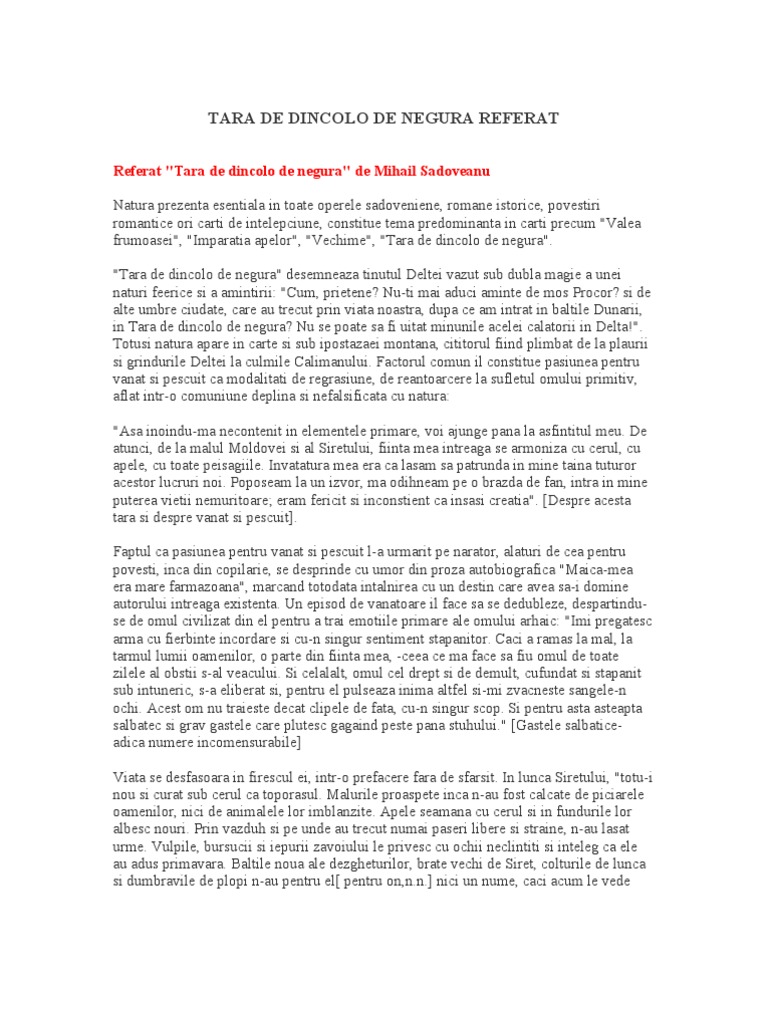 Tara De Dincolo De Negura Mihail Sadoveanu