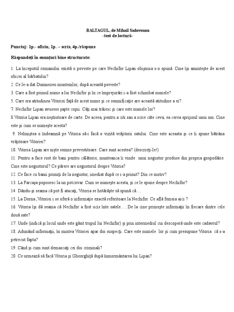 Baltagul De Mihail Sadoveanu Test De Lectura Quiz Quizizz