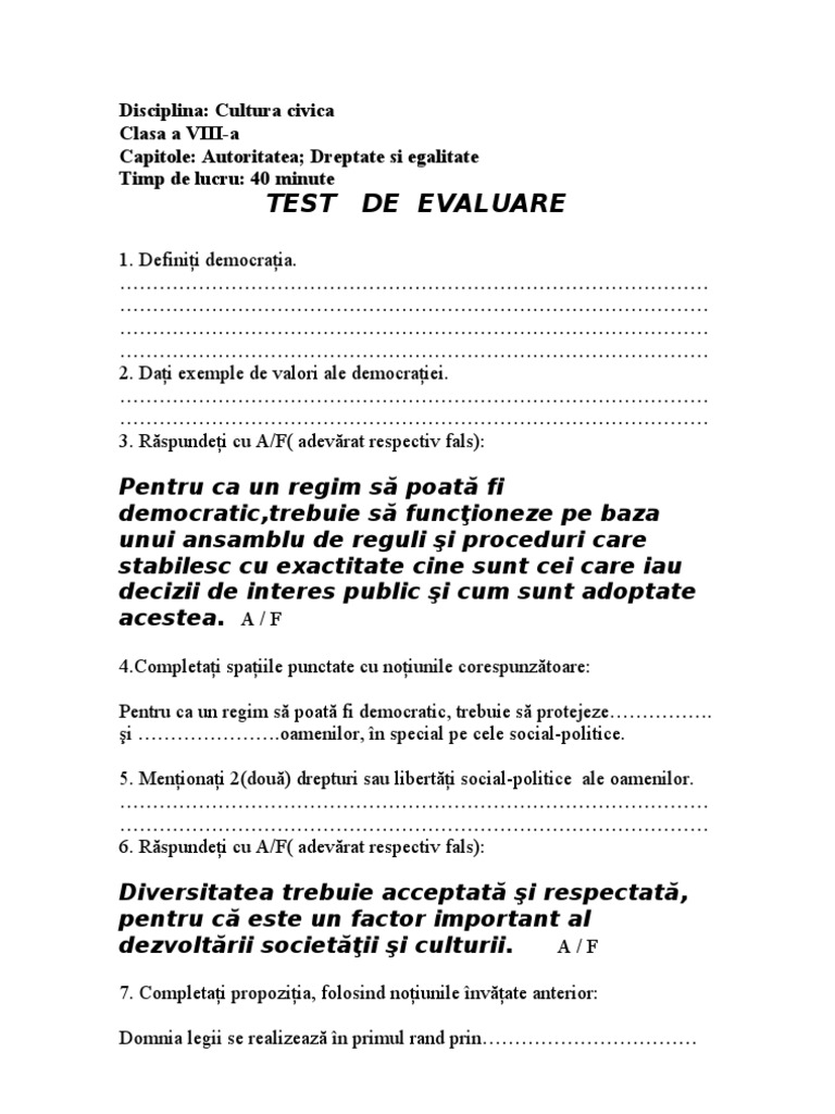 Cultura Civica Clasa A 8 A