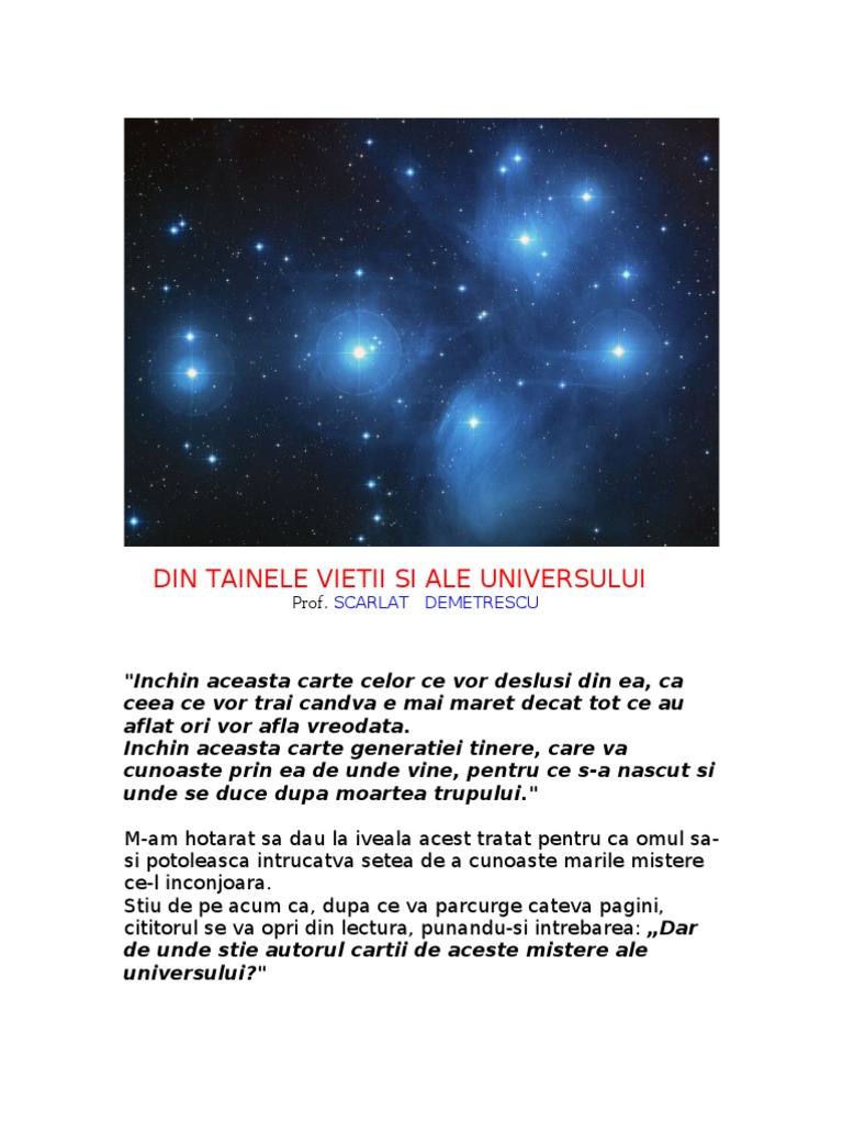 Din Tainele Vietii Si Ale Universului Scarlat Demetrescu Pdf