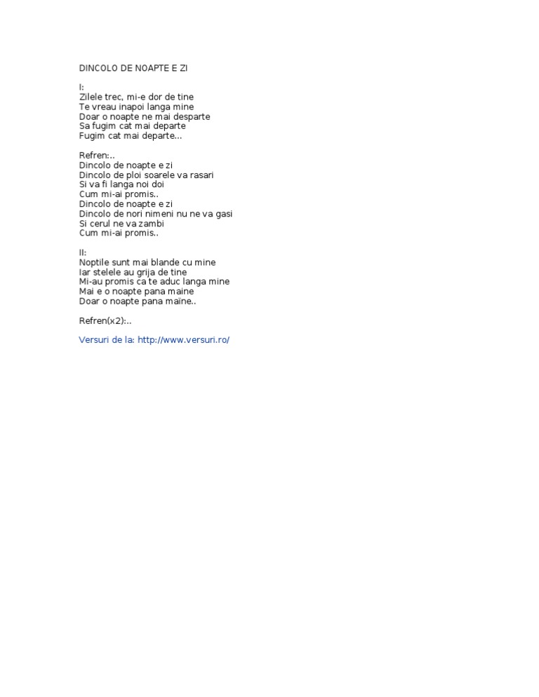 Dincolo De Nori Versuri