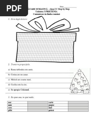 1 Scrie După Dictare Evaluare Sumativă Clasa I C Step By Step Unitatea 3 Prietenia Comunicare In Limba Romană