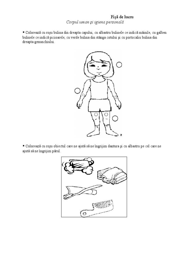 Fise De Lucru Gradinita Corpul Uman Obiecte De Ingrijire Personala Fise De Lucru Pentru Copiii Din Scola Si Gradinita