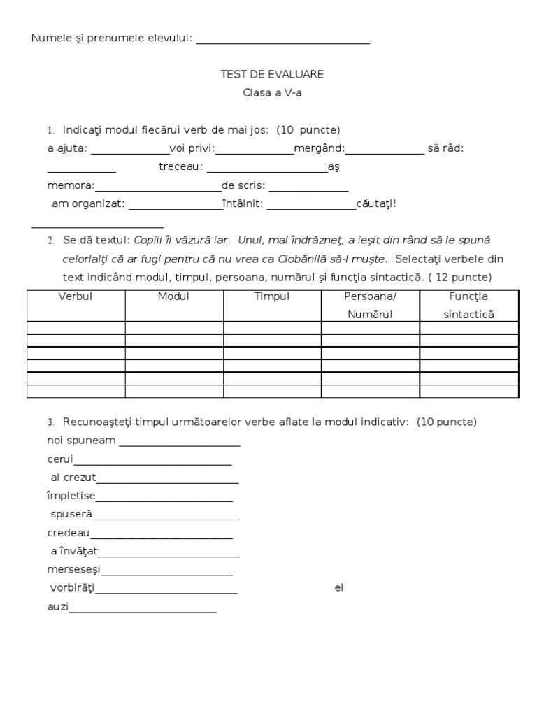 Fise De Lucru Limba Romana Clasa 3 Verbul