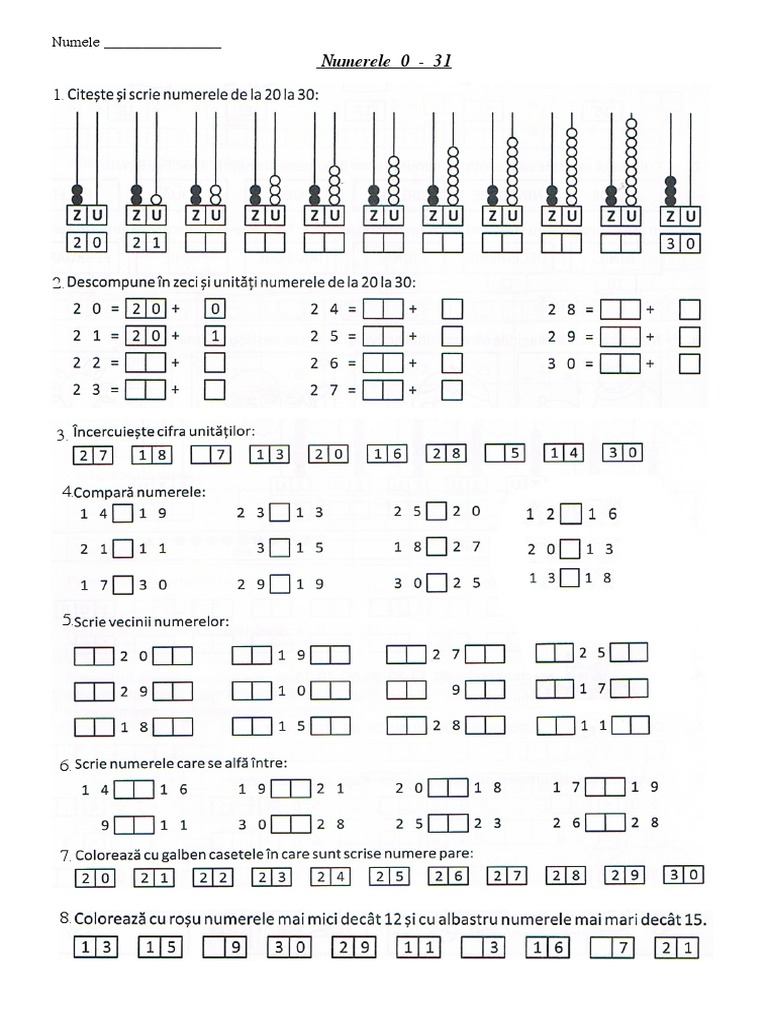 Numere 0 31 Pregatitoare