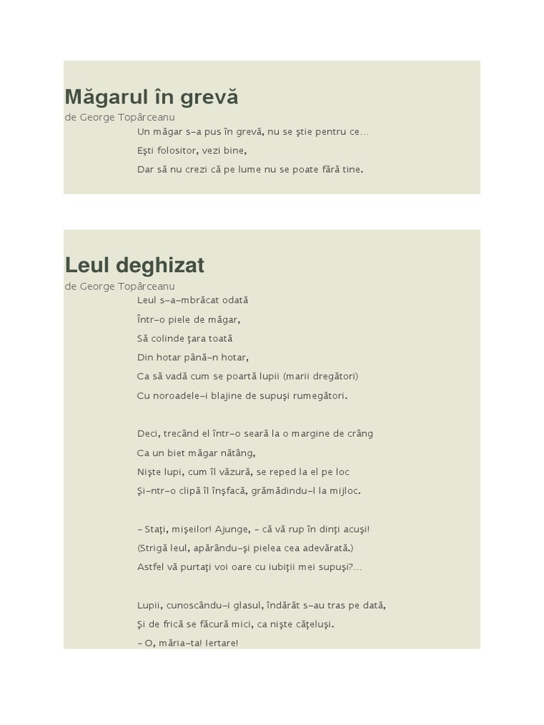 Fabule De Grigore Alexandrescu