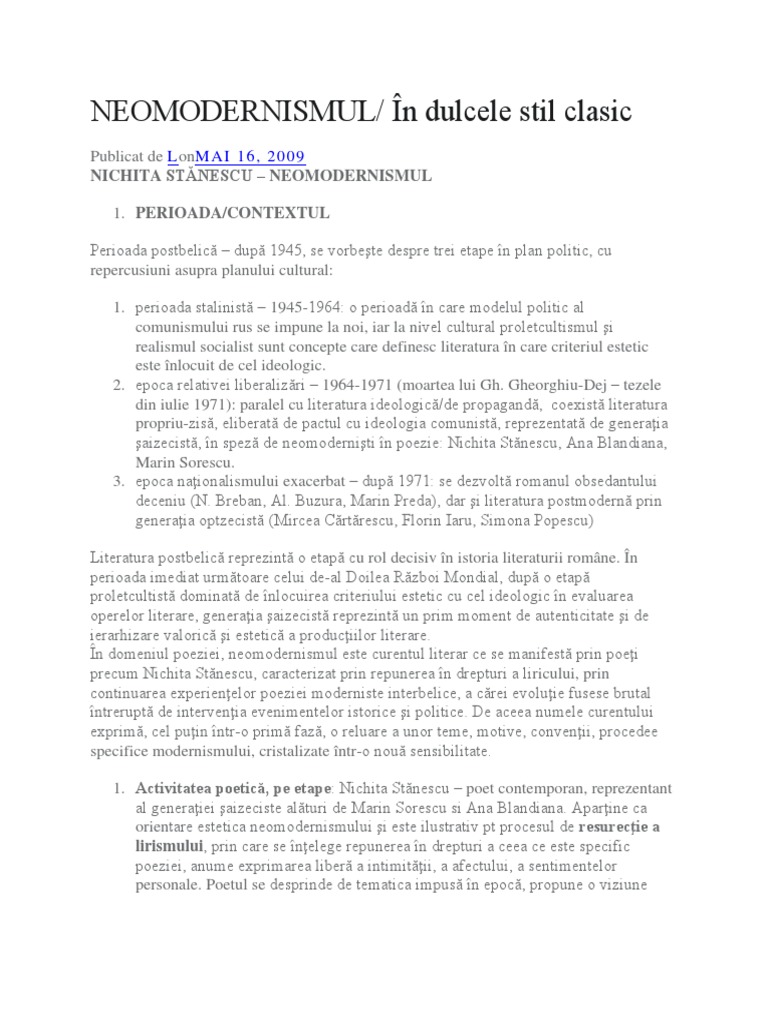 In Dulcele Stil Clasic Nichita Stanescu