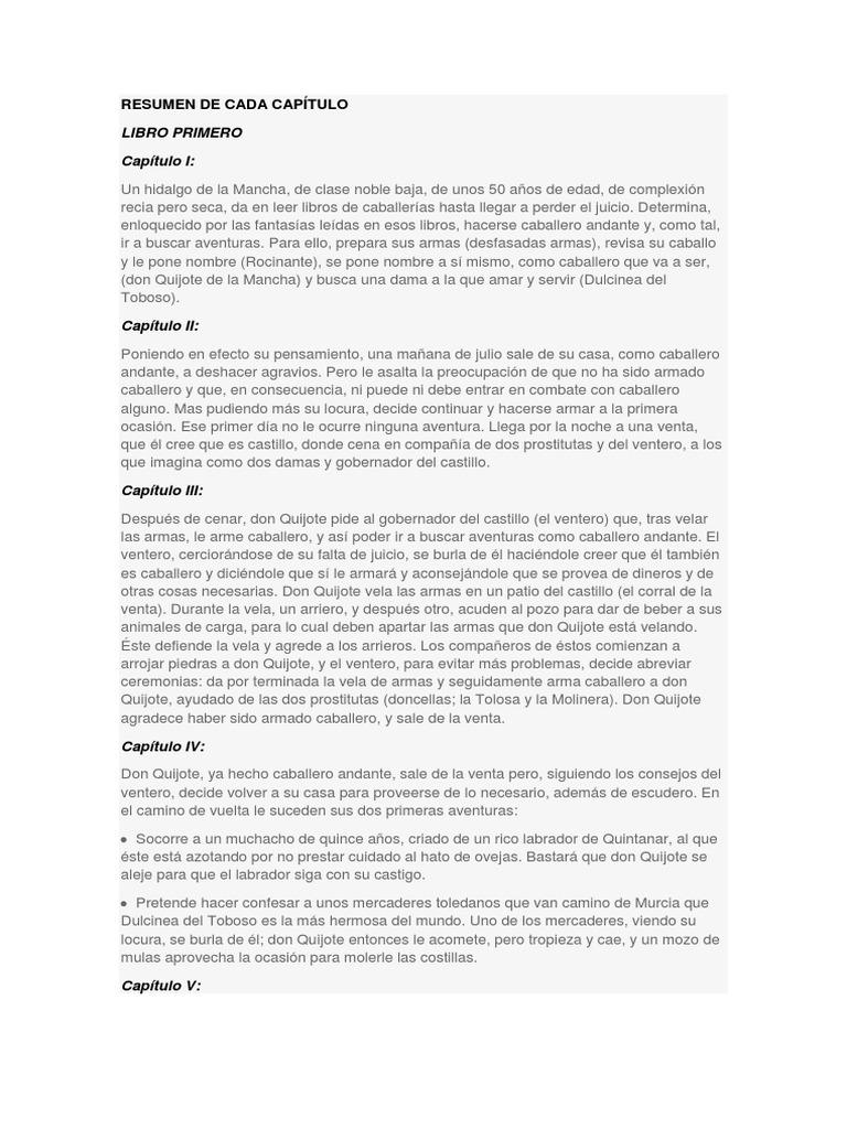 Resumen Por Capitulo Del Quijote De La Mancha