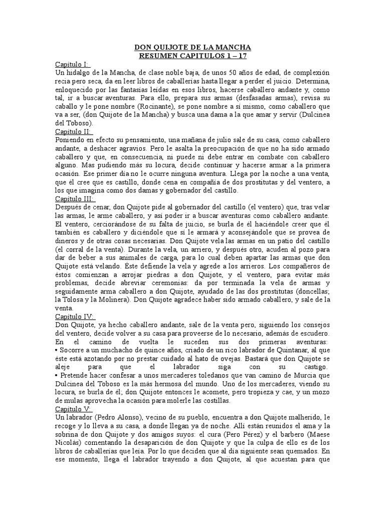 Resumen Del Quijote De La Mancha Docsity