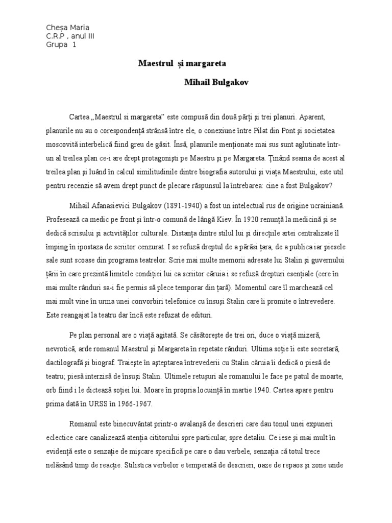 Pdf Bulgakov Maestrul Si Margareta Andreea Rad Academia Edu