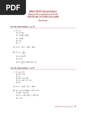 Mate 2000 Consolidare Clasa A Vi A Partea I 2018 2019 Clb Ro