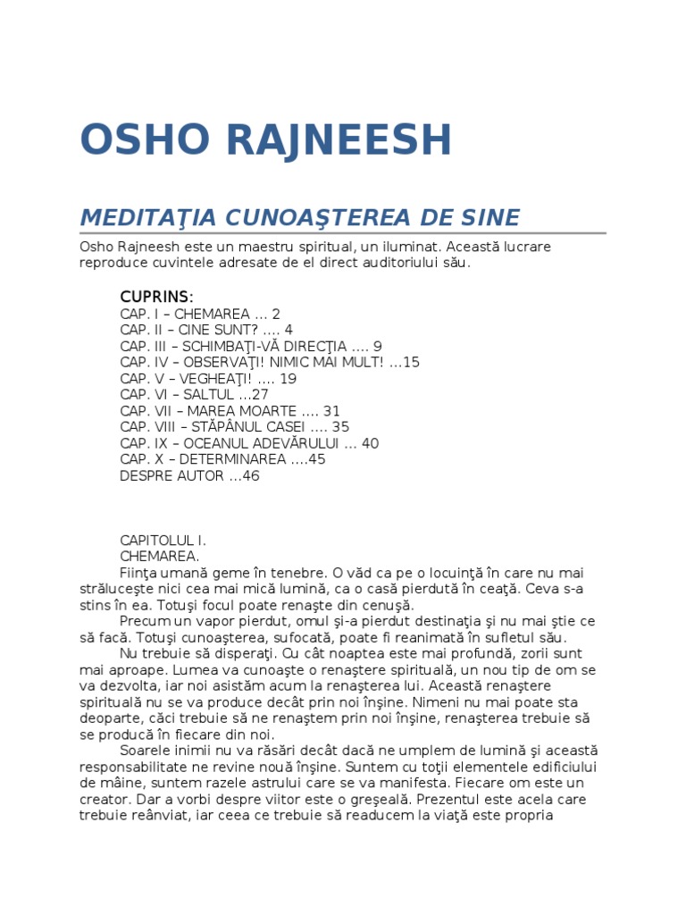 Meditatia Cunoasterea De Sine Osho Rajneesh Pdf