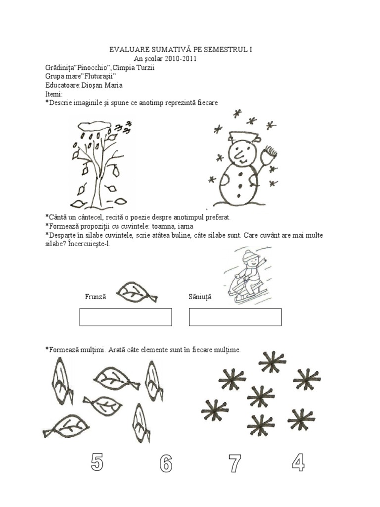 Fise De Evaluare Sumativa Grupa Mica