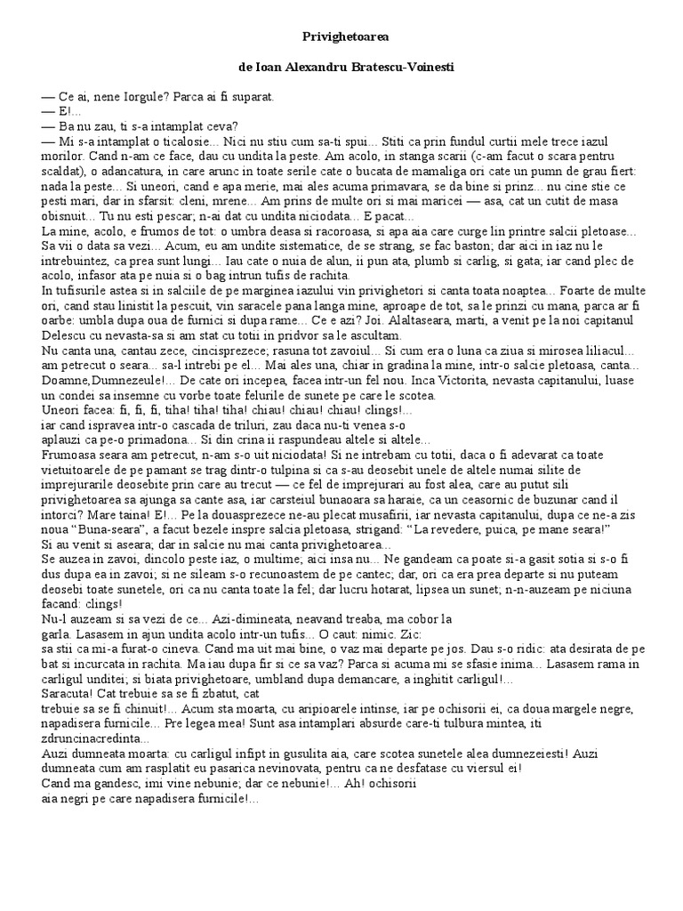 Privighetoarea De Ioan Alexandru Bratescu Voinesti
