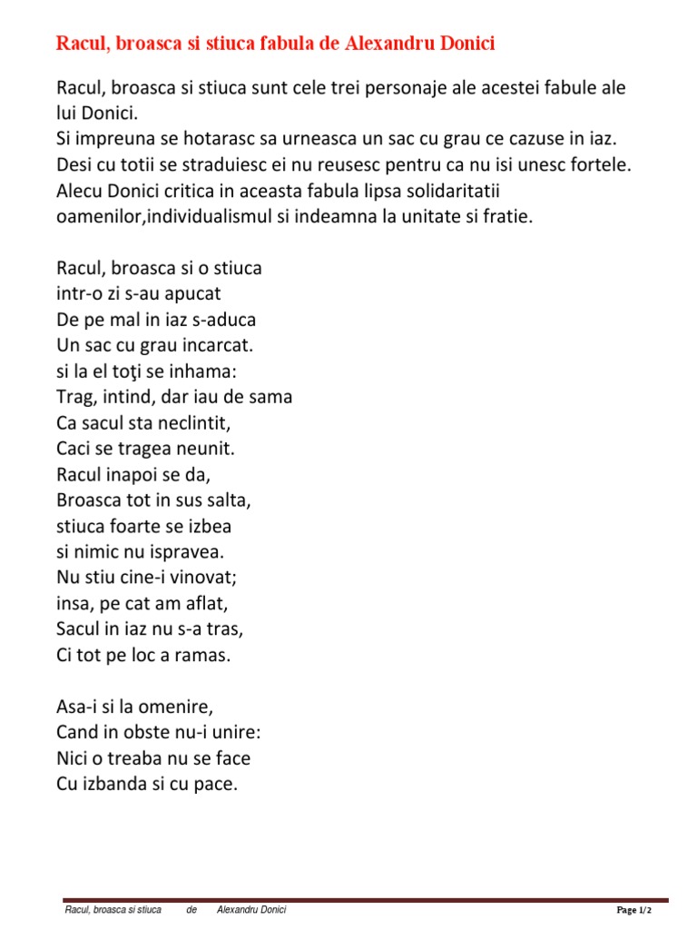 Racul Broasca și știuca Fabulă De Alecu Donici Gokid