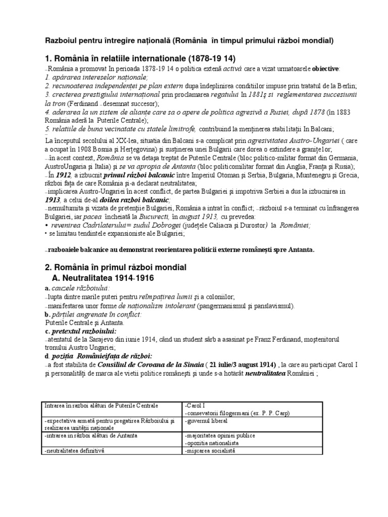 Curs Razboiul Pentru Intregirea Nationala Istoria Romanilor 120048