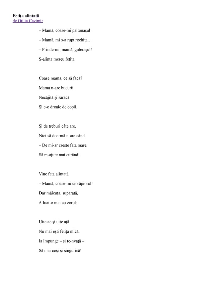 Fetiţa Alintată Poezie De Otilia Cazimir